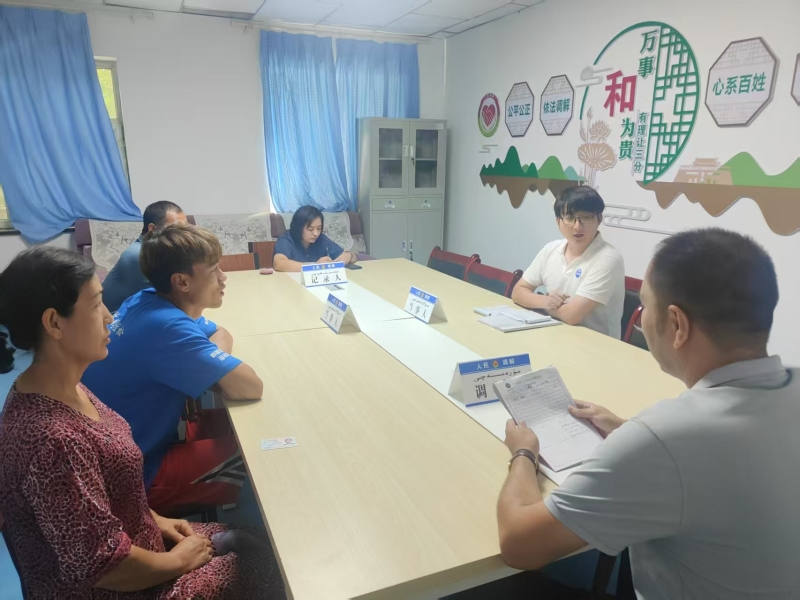 “瓜果飘香”调解室工作人员正在调解一起纠纷。受访单位供图