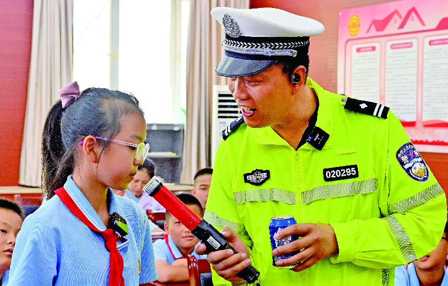 6月18日,乌鲁木齐市公安局交警支队沙依巴克区大队民警走进第五十五小学、第六小学,上交通安全课。