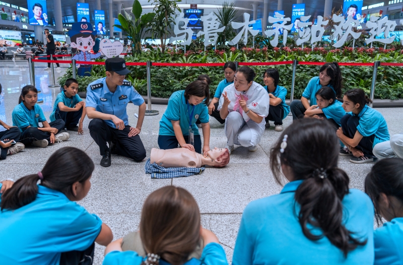 新疆法制报网讯 6月30日,乌鲁木齐铁路公安局乌鲁木齐公安处乌鲁木齐站派出所联合新疆医科大学第一附属医院眼科、急诊科,在乌鲁木齐站候车大厅开展“警医联动 暑期安全护航”主题宣传活动。
