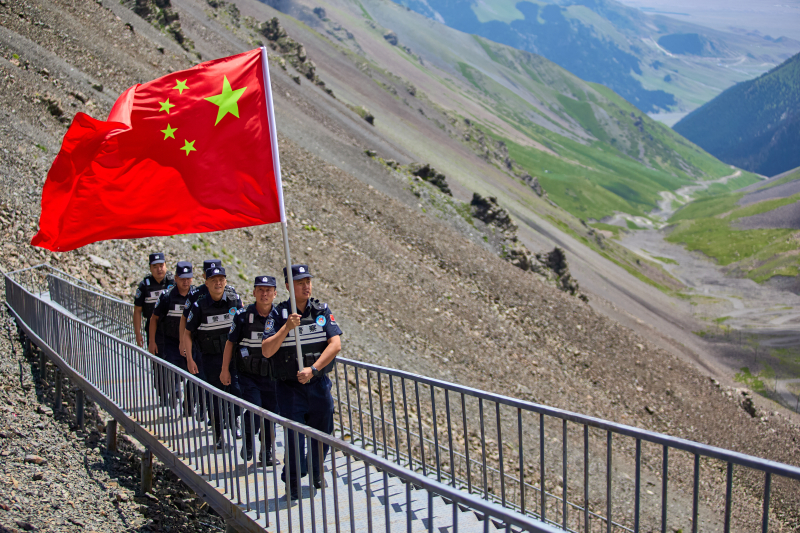 民警徒步翻越达坂前往目标区域。
