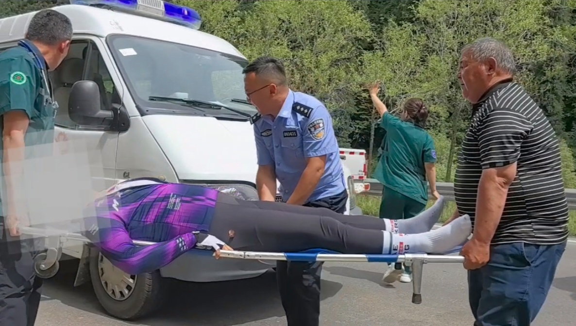 6月23日15时10分,独库中队民警巡逻至国道217线742公里处,发现一名骑行游客在下坡急转弯处因车速过快摔倒,头部、肩部和腰部多处受伤,情况十分危急。考虑到独库公路部分路段地形复杂,救护车难以快速抵达,为争取救治时间,民警决定驾驶警车护送伤者。