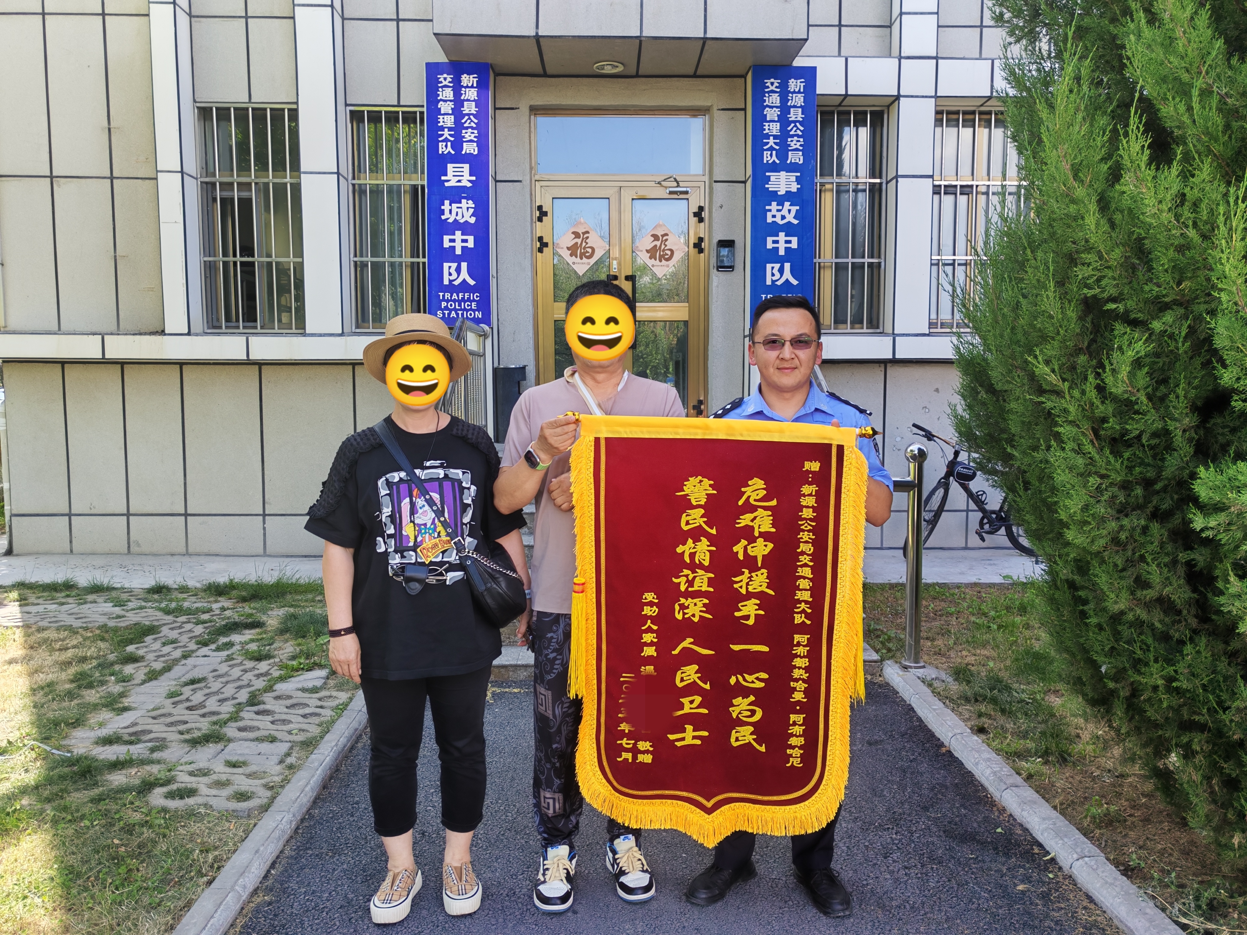 在医护人员的精心治疗下,温先生很快痊愈。他专程将锦旗送到独库中队民警手中,以表感激之情。