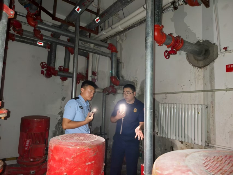 在教学楼,民警检查了消防设施的有效期、安全通道是否畅通,排查电线电器安全隐患;在校园食堂,民警仔细查阅食材采购台账与餐具消毒记录,对发现的隐患现场出具整改意见,督促立行立改,不留死角。