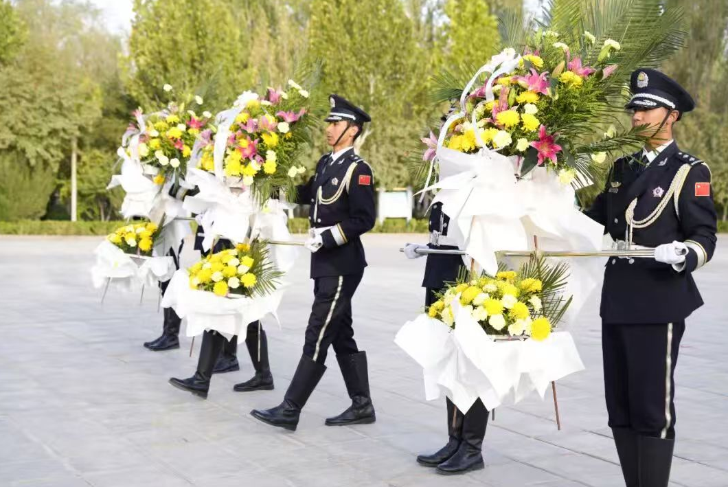 阿克苏地区公安局向人民英雄纪念碑敬献花篮