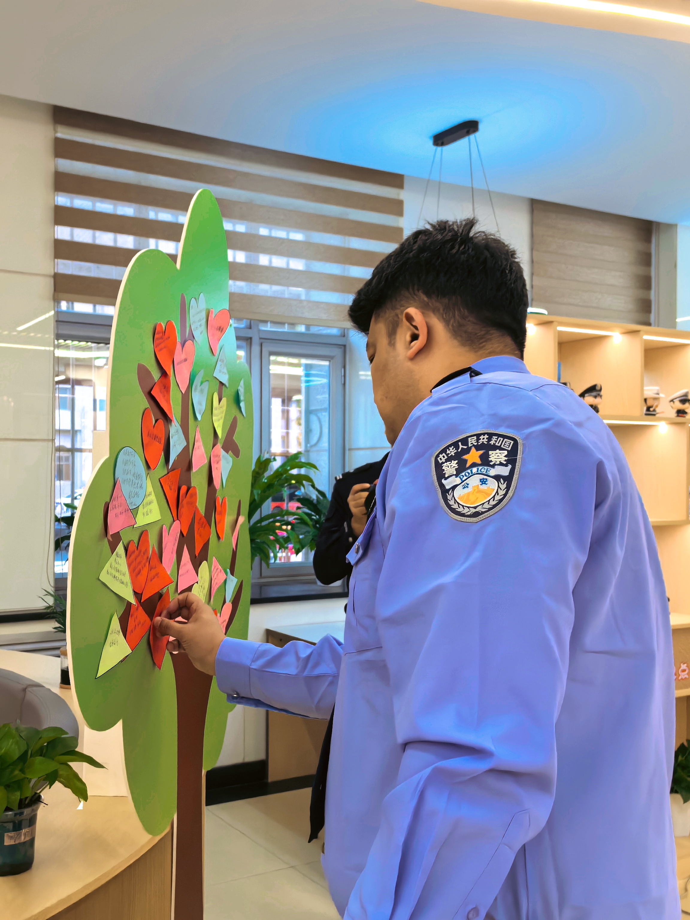 活动尾声,大家纷纷写下寄语贴在“许愿树”上。“最爱的人,我想你”“我们从没忘记你”“我希望以后,也当一名警察”……这些让人感动和温暖的话语,承载着大家对战友、亲人的思念和对公安事业的美好寄语,这棵“枝繁叶茂”的许愿树也象征着英烈精神代代相传。