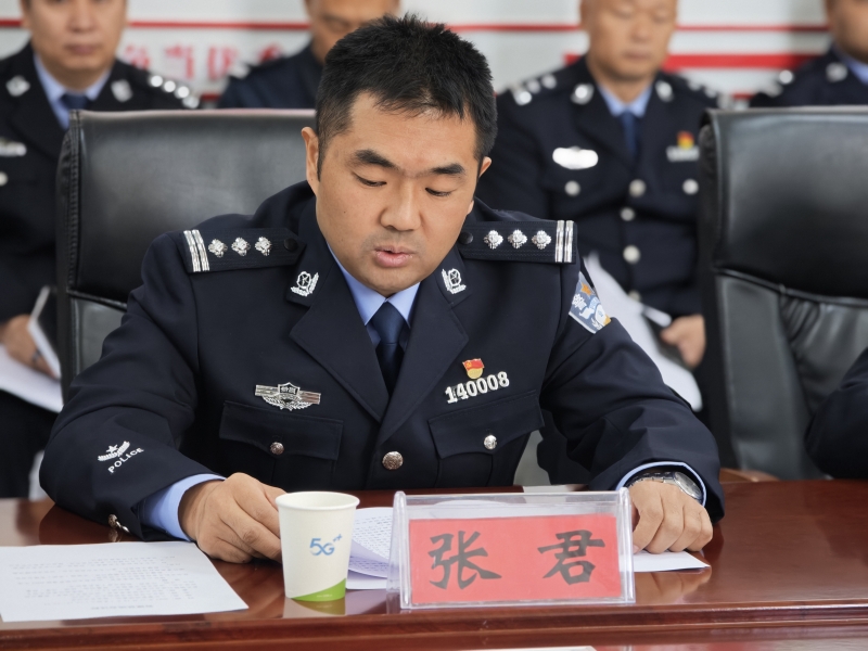 阿克苏地区公安局党委委员、政治部主任张君在“警媒恳谈会”上致辞。石榴云/新疆法治报记者 赵书城摄