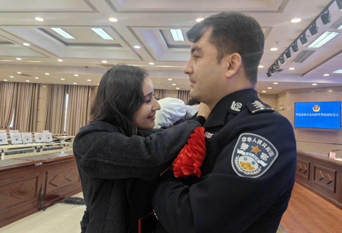 “能和家人一起站在仪式现场,我既感到光荣,也深知肩上的责任更重了,往后我会带着家人的期盼和组织的信任,在岗位上履职尽责,再建新功!” 在阿克苏市公安局举办的民警警衔晋升仪式上,新晋警衔的民警紧握着家属的手说。