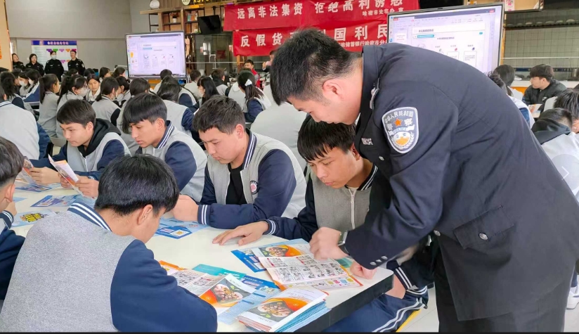 近日,民警正在向同学们讲解假币鉴别方面的知识。通讯员 欧洋摄