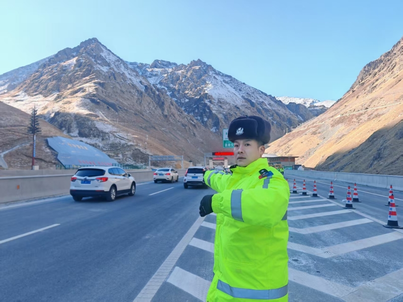 说话间,警车驶入后峡出入口民警提示点,乌拉泊大队民警周伟正向过往车辆开展安全提示,“货车一定靠右行驶”“注意隧道里的限速提示”“全程禁止停车”,他的声音因长时间喊话有些沙哑,脸颊被山风吹得通红。