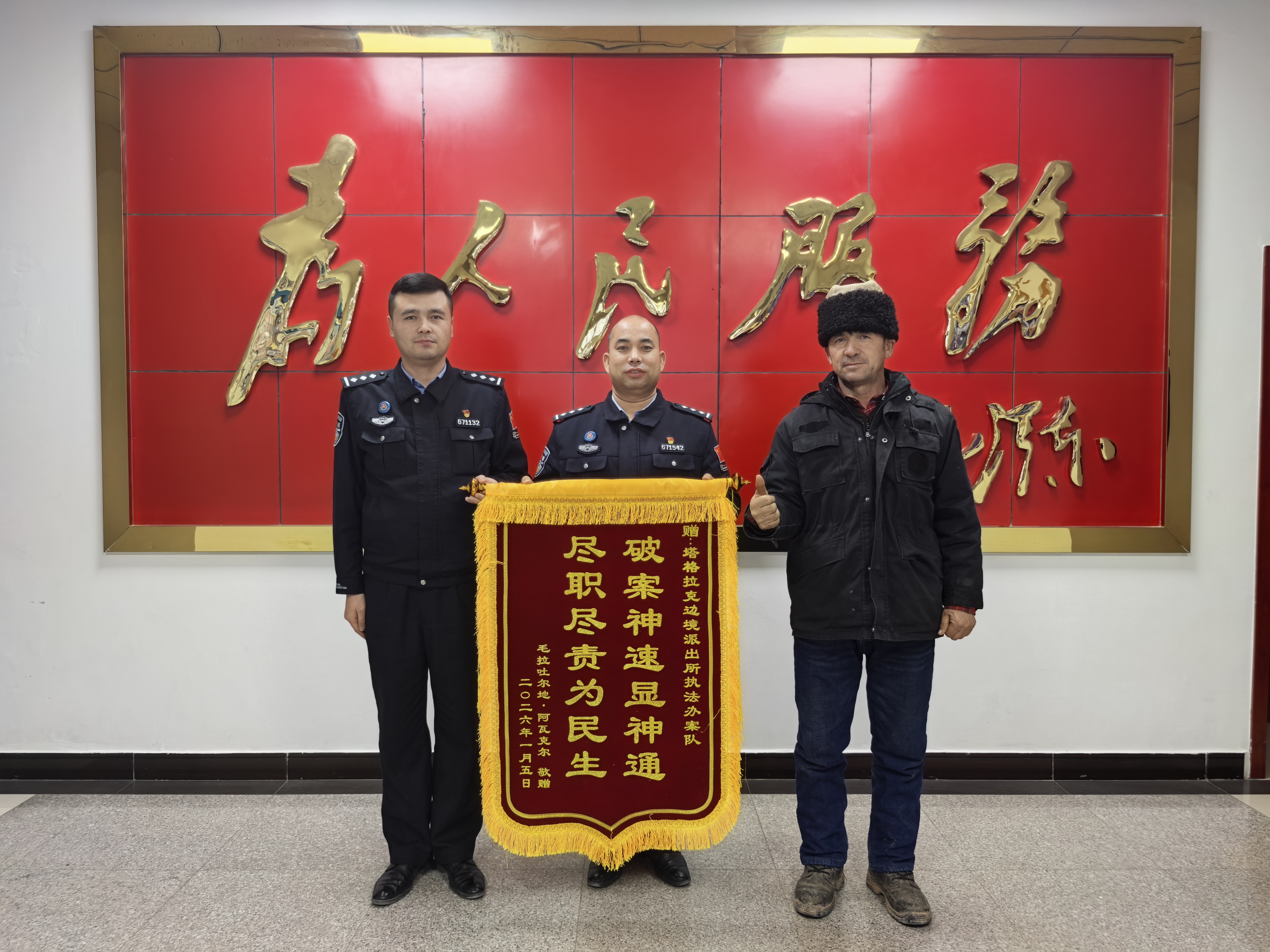 如今,毛拉吐尔地送来的锦旗,与塔格拉克边境派出所荣誉墙上原有的锦旗并排悬挂在一起。每面锦旗背后,都有一个温暖的故事,都是民警坚持“以人民为中心”工作目标的生动缩影。
