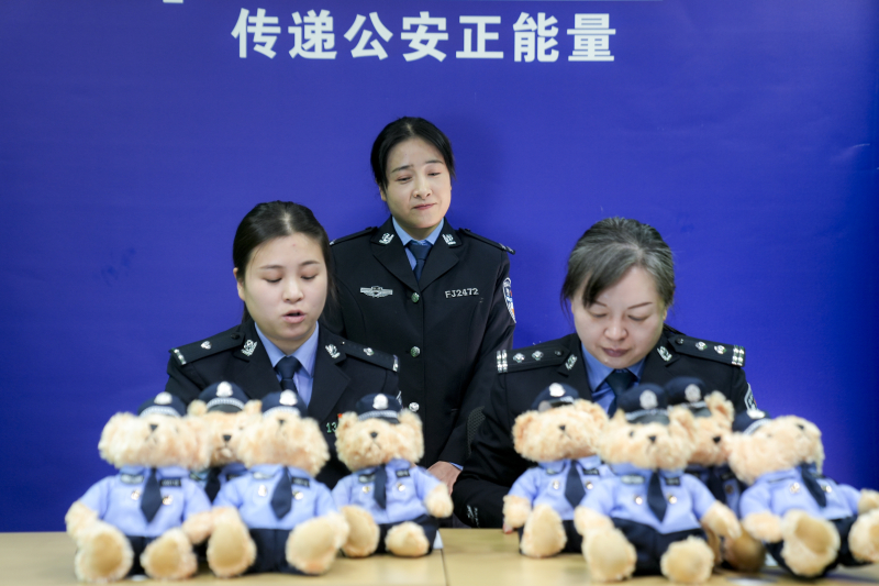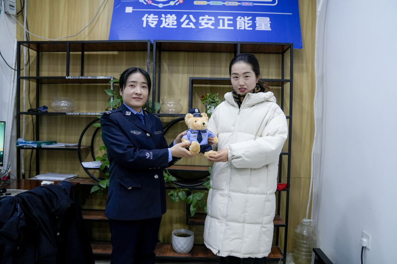 1月28日,居民陈女士来到轮台县公安局,领取在直播互动中赢得的“警察小熊”。通讯员 崔文珂 摄
