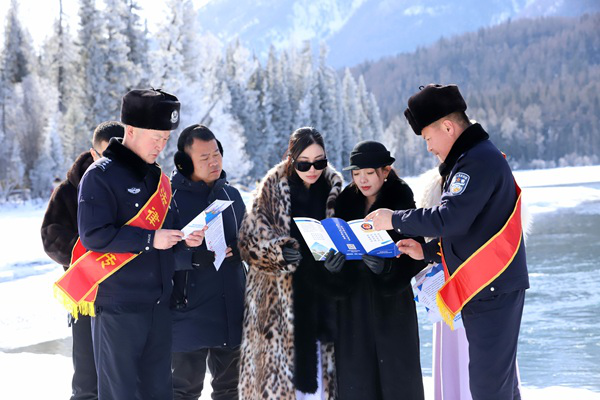 民辅警在景区开展生态环境保护相关的普法宣传。受访单位供图