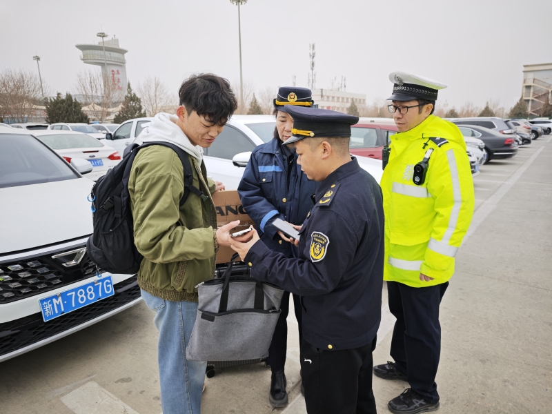 石榴云/新疆法治报讯(记者 韩晋 通讯员刘帆报道)1月28日,巴音郭楞蒙古自治州公安局机场分局联合库尔勒市交通运输局,在库尔勒梨城机场周边开展打击非法营运专项整治行动,切实保障旅客出行权益。