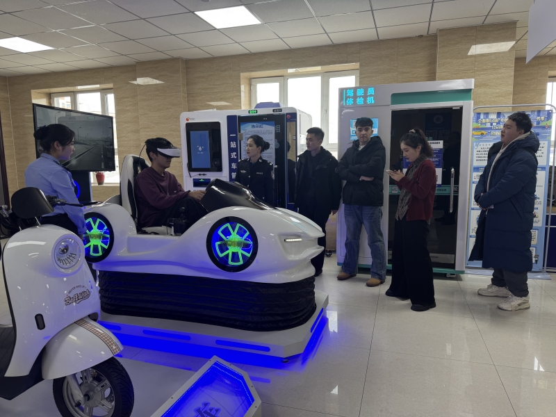 观看视频还不够,民警将新驾驶人带至交通安全VR体验区,让大家沉浸式体验交通违法行为的危害。