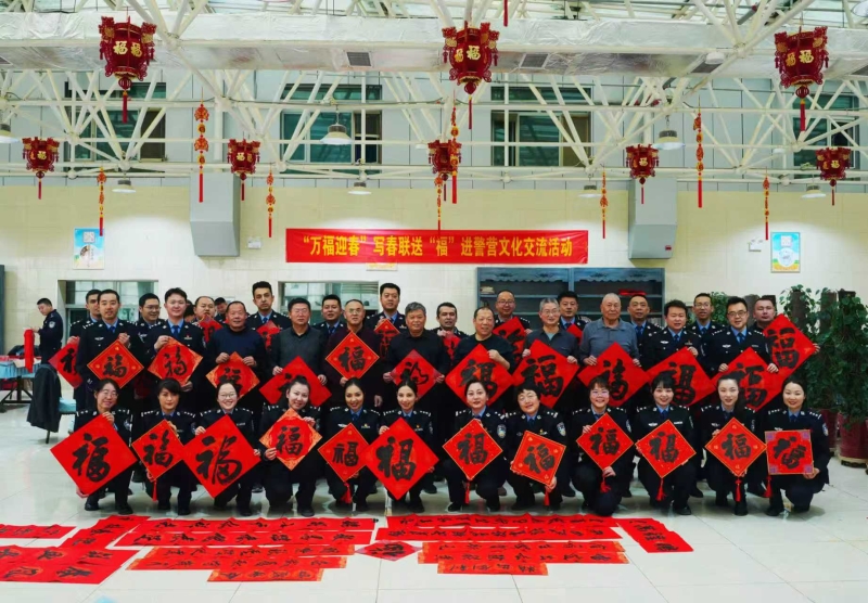 2月3日,阿克苏地区公安局邀请该地区书协副主席、阿克苏市书协主席贺杨一行7名书法老师走进警营,开展“万福迎春——写春联送‘福’进警营”文化活动。