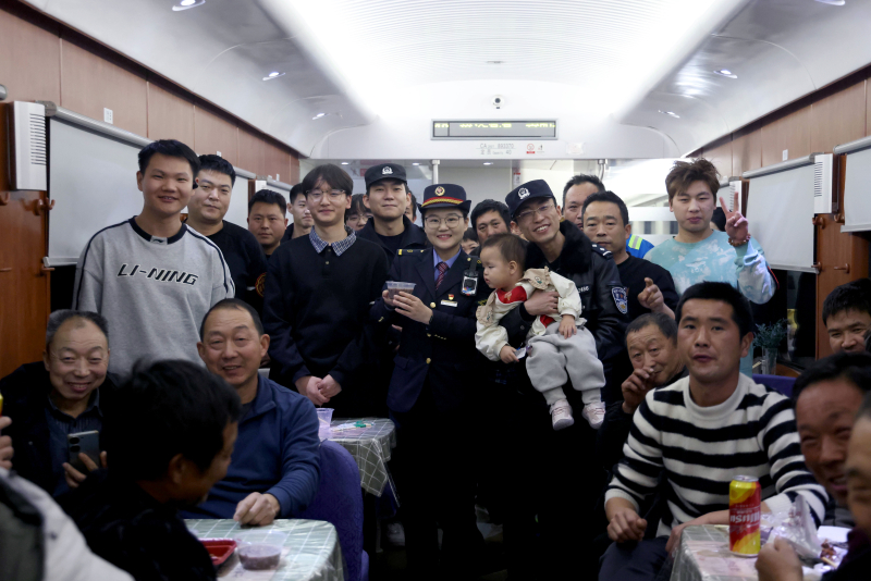 列车上的工作人员和旅客在餐车上欢聚一堂。 通讯员 杨佳闻摄