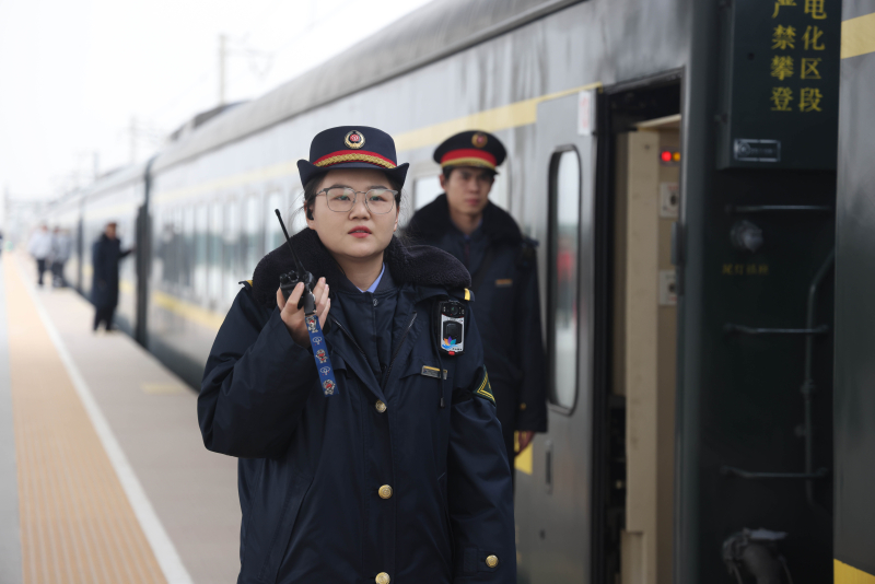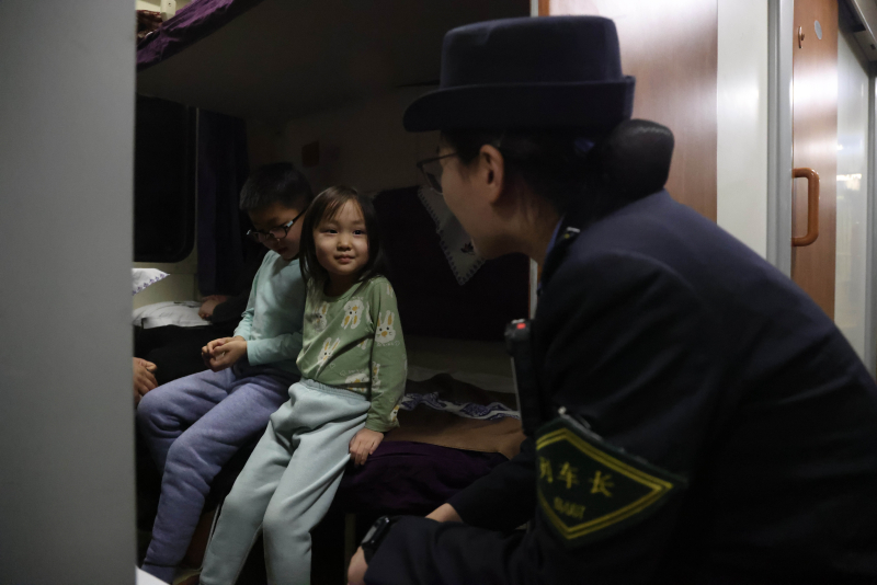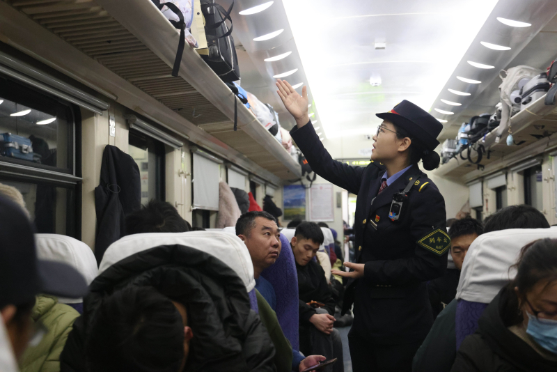 2月3日18时26分,Z179次列车从北京西站出发,满载旅客驶向乌鲁木齐站。列车长王爽像往常一样逐节车厢巡视,左臂上编号“007”的臂章随着她的动作轻轻晃动。