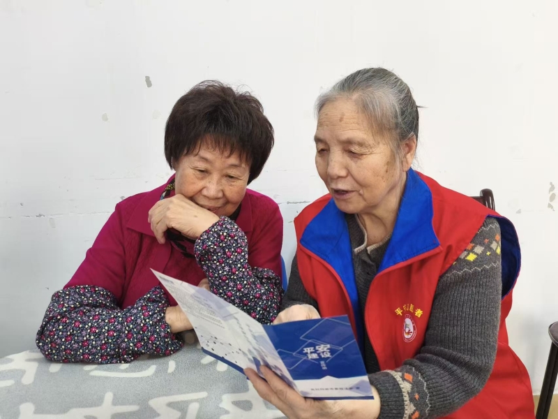 1月30日,克拉玛依区昆仑路街道文明供应社区兼职网格员给居民讲解平安建设知识。受访单位供图