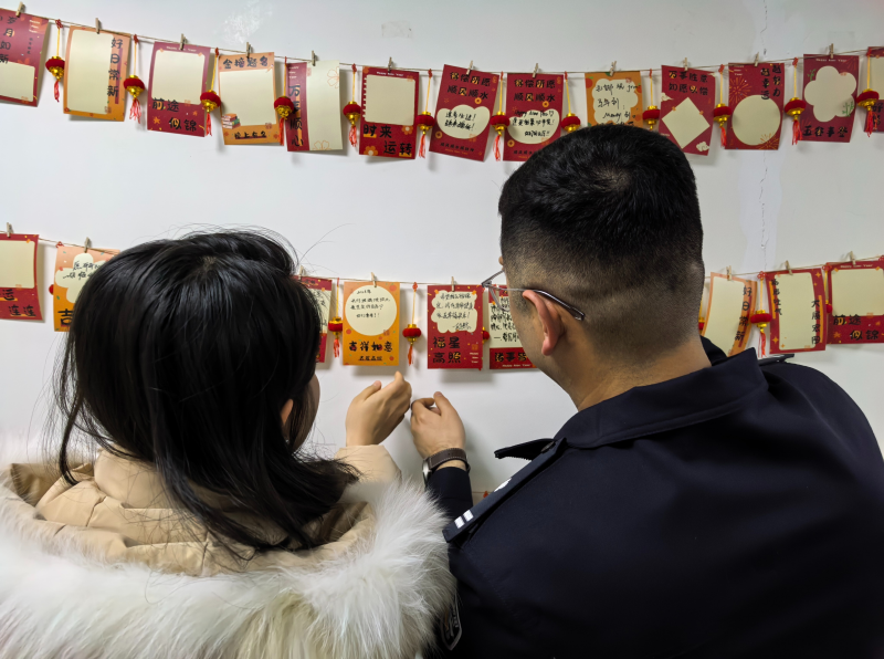 2月16日,腊月廿九,除夕。记者走进乌鲁木齐市公安局沙依巴克区分局平顶山街道派出所,浓浓的年味扑面而来:鲜红的福字、喜庆的春联、精巧的窗花,热烈的中国红与肃穆的藏蓝交织相融,勾勒出警营里独有的新春韵味。