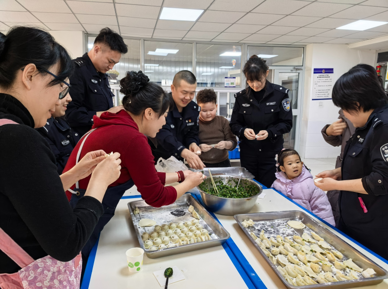平顶山街道派出所民辅警和家属一起包饺子。石榴云/新疆法治报记者 龚彦晨摄