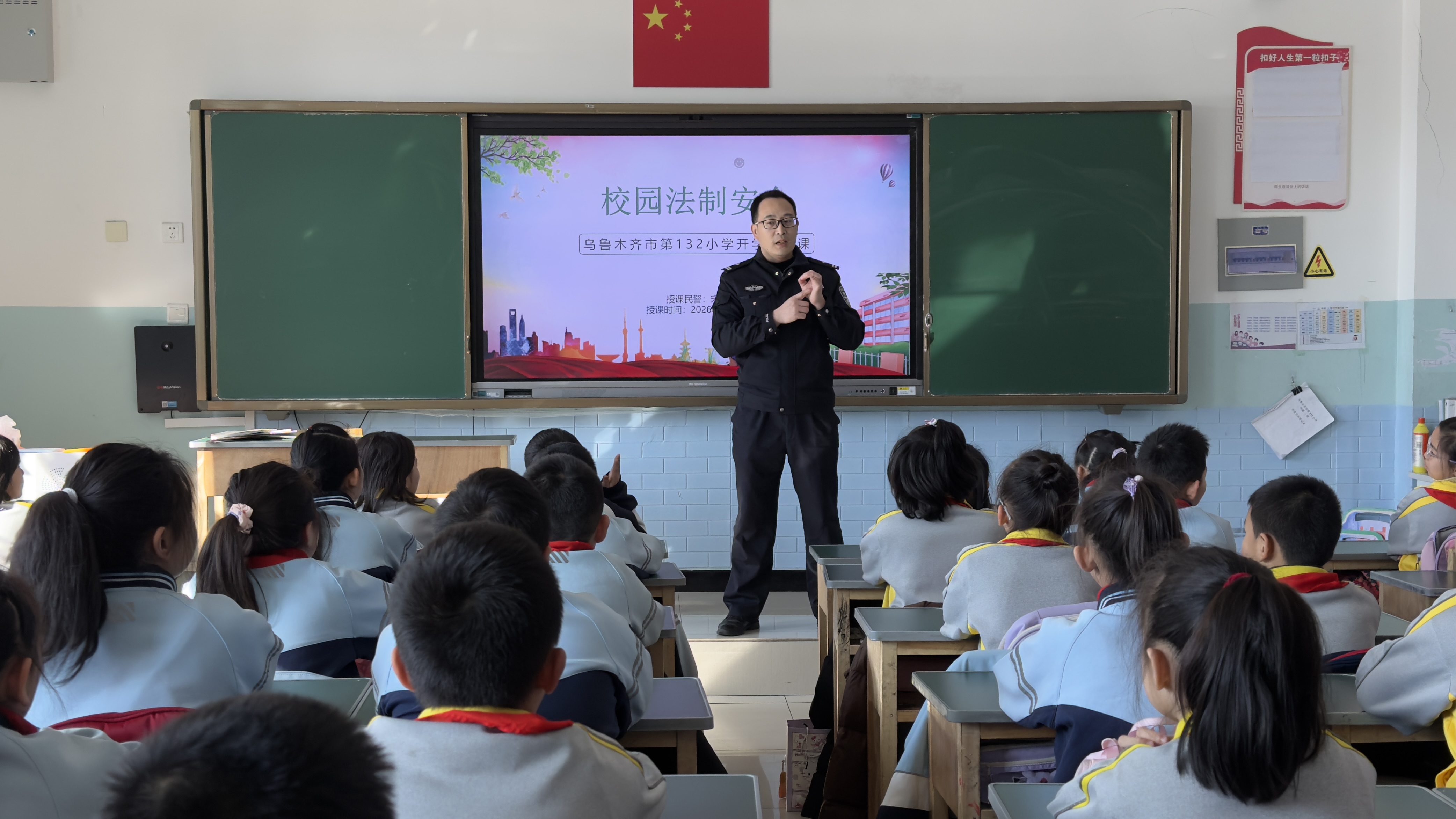 新疆法制报网讯 3月4日,乌鲁木齐市公安局高新区(新市区)分局天津路派出所鸿阳社区警务室民警宋杰与迪力夏提·玉素甫,作为“法治副校长”,带着特别的“开学礼”走进了乌鲁木齐市第132小学的课堂。他们将普法宣传与校园安全深度融合,为同学们带来了一堂生动深刻、别开生面的“开学第一课”。